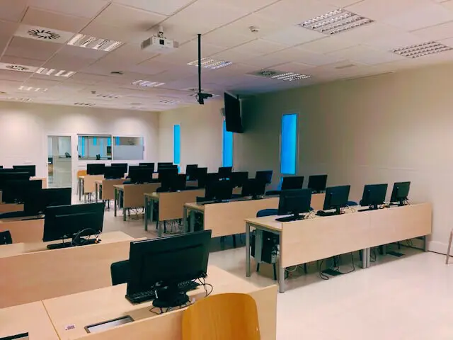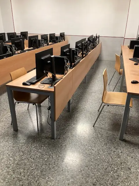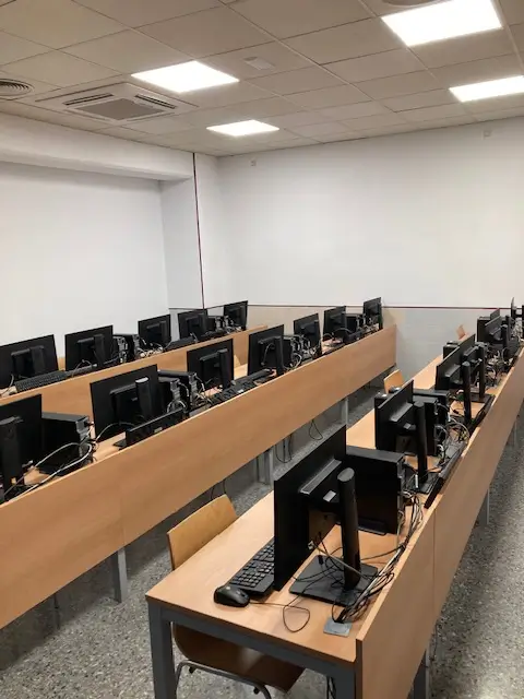 Equipamos un aula informática moderna con puestos individuales, cuidando la ergonomía, la conectividad y la distribución para facilitar el aprendizaje.